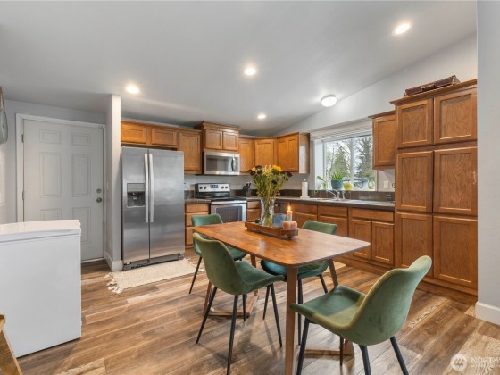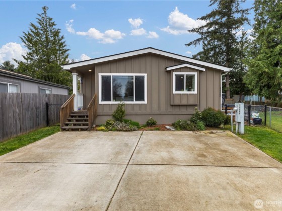 The one you’ve been waiting for! Tucked at the end of a quiet cul-de-sac, this 2017 home brings all the home-sweet-home vibes. Enjoy upgraded floors, stainless appliances and big bright windows that fill every room with natural light. Plant lovers, your indoor jungle will thrive here! The open layout connects a spacious kitchen for your inner chef. Private primary suite, private bath-double vanity, shower walk-in closet. Gazebo, garden and a fenced yard ready for BBQs, pets, or play. Leased land $975/month — lot maintained by resident. One of the best homes in the community. Close to shopping, schools, parks and fantastic for commuters! Affordable in King County, a must see!