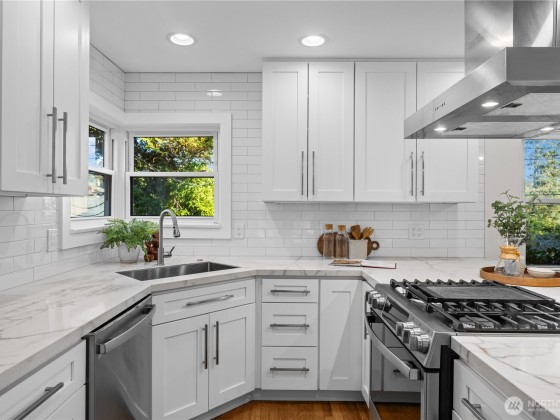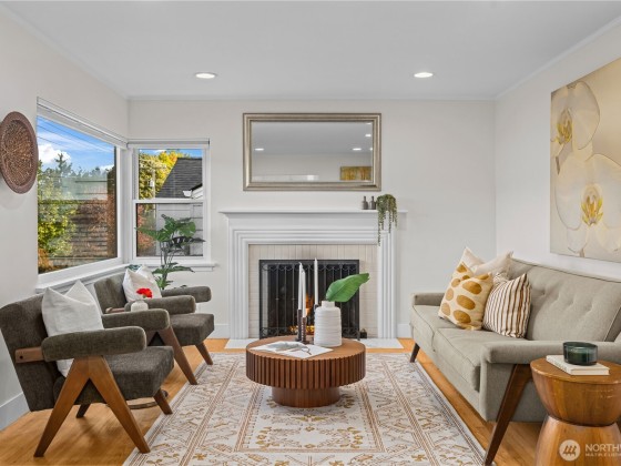 Step into this beautifully reimagined Magnolia home, offering over 1,750 sq ft of stylish, turnkey living. The heart of the home is a chef-inspired kitchen with quartz counters, stainless steel appliances, crisp white cabinetry, and a chic tile backsplash—perfect for entertaining. Sunlit spaces showcase gleaming hardwoods, while spa-like bathrooms feature heated tile floors. Thoughtful updates include newer systems, roof and fresh paint. Lower level is fully finished, providing a generous bedroom, walk-in closet, and a convenient ¾ bath. A detached garage plus additional off-street parking and storage add flexibility. Backyard cedar barrel sauna conveys. All this in a prime Magnolia setting, moments from parks, shops, and downtown Seattle!