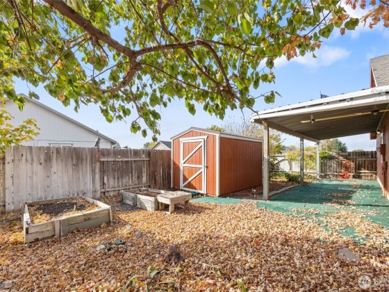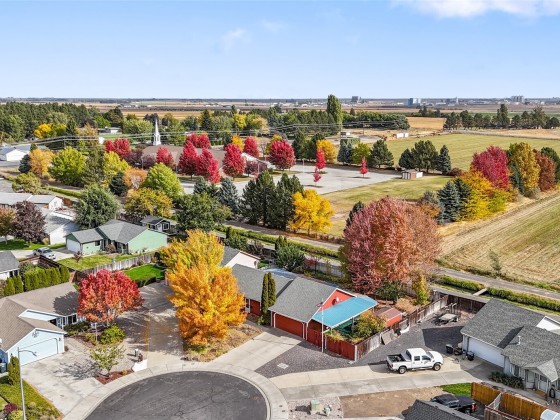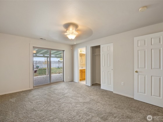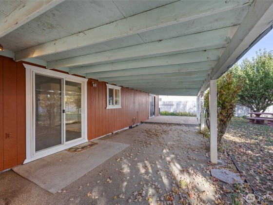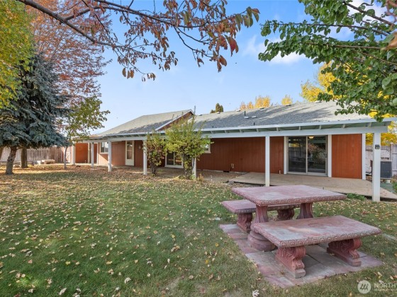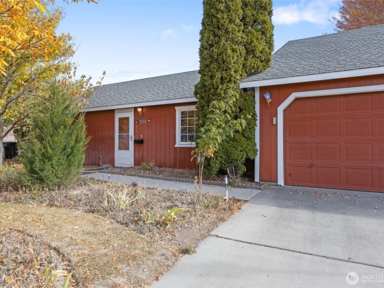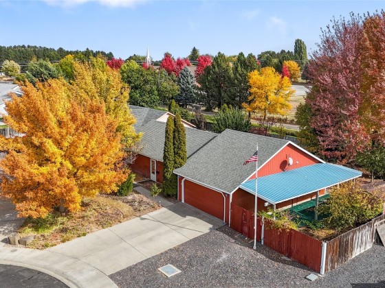Great little 2-bedroom, 2-bath rambler tucked away in the back of a cul-de-sac. Home has a HUGE fully finished garage with office space for all of your shop projects; and large private backyard with full length covered patio. Brand new carpet and interior paint in this lovely home. Primary bedroom with 2 closets has an attached full bath. Additional bath off the hall, serves the other bedroom and guests. Spacious kitchen with dining area and laundry closet close-by.
