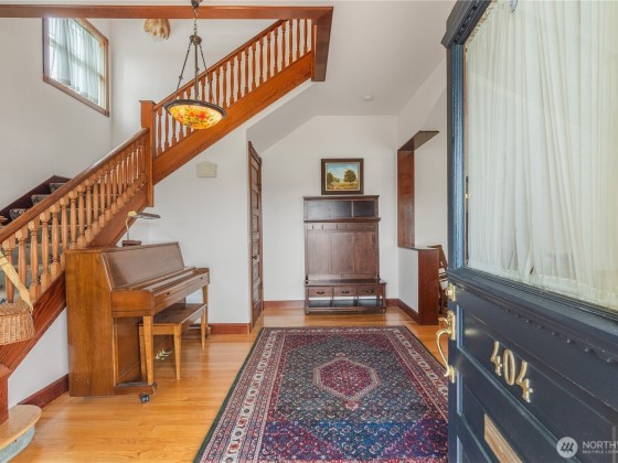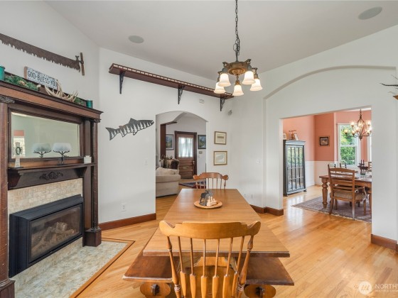 Step into timeless elegance with this iconic 1906 historic home, offering four spacious bedrooms, three baths, and over 3,700 sq ft of living space, all nestled on a generous corner lot. This architectural showpiece features intricate original wood work rarely seen today. Each of the home's three full stories offers generous space, high ceilings, and an abundance of natural light. The regal formal dining room is designed for memorable entertaining, while the updated kitchen boast SS appliances, ample counter space, and a large pantry. The primary suite includes two closets and a bath with a classic clawfoot tub. Step outside and enjoy the inviting wraparound deck! With an assumable VA loan, at 2.875% interest rates.