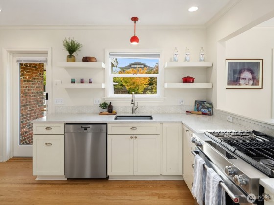 Set in the heart of Mt Baker on a large lot, this timeless brick home combines a smart floor plan & modern updates with warmth & character. Light fills the main level, where impressively sized living areas include a bay-windowed living room with fireplace, an elegant dining space & a sleek kitchen with breakfast nook, premium appliances, soft-close cabinetry & garden views. Step outside to a covered outdoor living room with a gas fireplace for all year outdoor fun, surrounded by rose-filled gardens offering privacy & beauty, plus a low maintenance turf lawn in front. Downstairs features a finished rec room with wet bar, guest suite & laundry. Two-car garage & private drive. Moments from chic coffee shops, Lake Washington & Mt Baker Park.