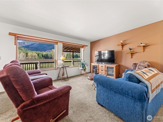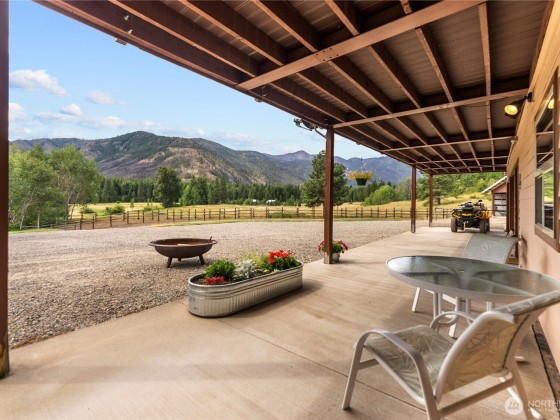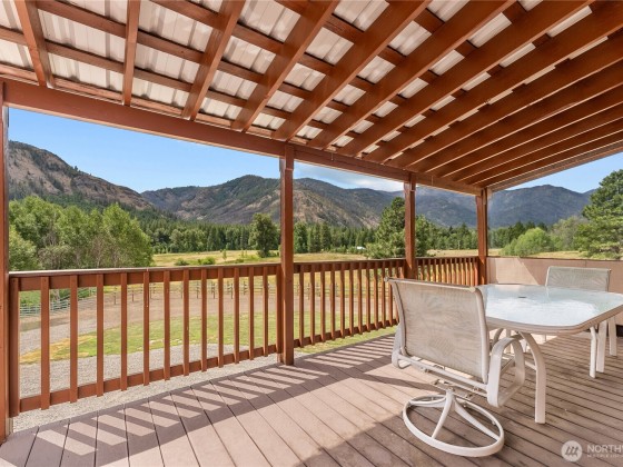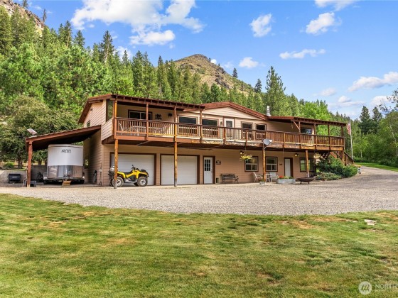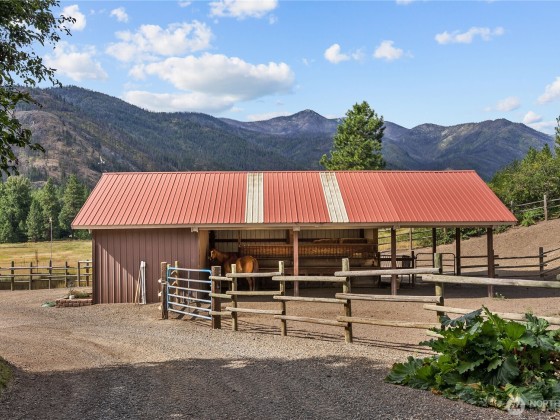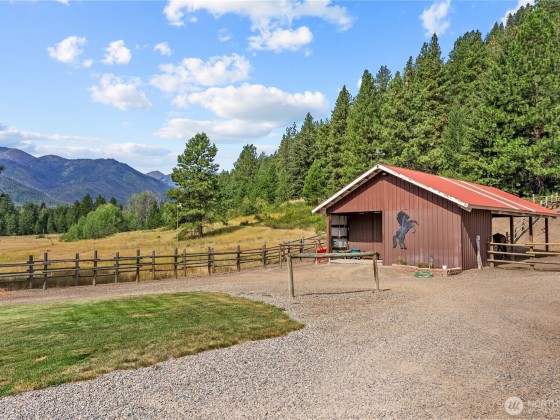 Twisp River equestrian, riverfront property. Deep in the magnificent North Cascade Mountains. Enjoy year round sunshine on over six acres of south facing, gated/fenced/corralled acreage. A well appointed manufactured home set on a full daylight basement giving you 5 bedrooms, 3 bathrooms, and a 2 car garage. An open concept kitchen/dining/living room. Gas cooktop. Gas fireplace. Primary suite w/private bath. Family/sewing room. Laundry/mudroom. Storage room. Partially covered full length deck. Covered back porch. Covered patio. Detached 4-bay carport for all your toys. Barn/hayshed. Over 425 feet of private no bank riverfront to enjoy. Come play in the Okanogan National Forest or just relax, take in a nightly sunset, and gaze at the stars.