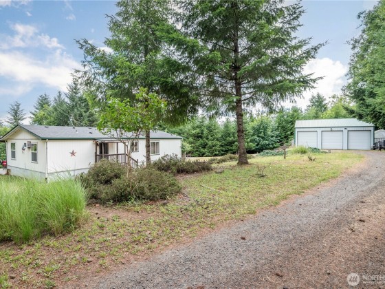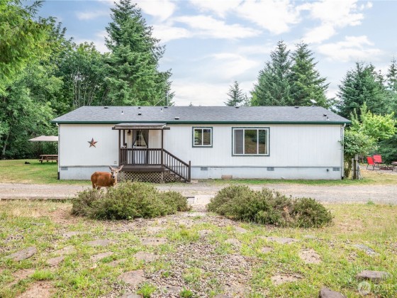 Experience abundant wildlife, private country living, and a 3-bay shop with this 3 bed, 2 bath manufactured home on 3.26 acres. Recently updated, this home features new flooring, renovated main and primary bathrooms, a new roof, kitchen upgrades, a woodstove, and new plumbing throughout. The oversized covered deck at the front of the home enhances the enjoyment of living in the Pacific Northwest. With room for a garden and orchard, the country living opportunities are endless. Visit us soon so you don't miss out on this gem in the country.