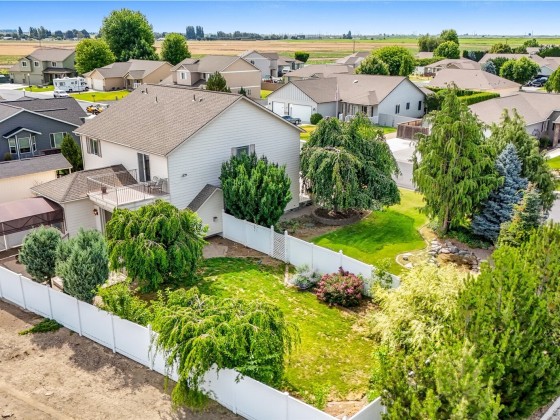 This well-loved 4 bedroom, 3 bath home offers comfort, space, and a great layout for everyday living. The large office with private side entry is perfect for working from home or welcoming guests. Enjoy peaceful outdoor spaces with patios, a balcony, a tranquil water feature, and mature landscaping. The cozy living area features a fireplace that flows into the open kitchen—ideal for everyday connection and special occasions alike. There's plenty of room for your vehicles and toys with a finished 3-car garage, RV parking, and a large shed. Just a short walk to the local park and minutes from town—this is small-town living at its best!