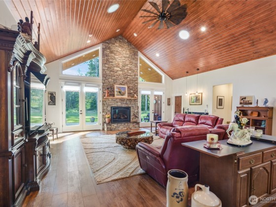 Gorgeous builder’s home on 6.39 acres—crafted with top-quality upgrades throughout! This 2,600 sq. ft. rambler features a chef’s kitchen w/ marble countertops & island, upgraded stainless appliances and 6-burner double oven range. Enjoy the floor to ceiling rock fireplace with maple live edge mantle and pine ceilings. Solid wood front and interior doors. Grand primary bedroom and 4-piece ensuite w/ heated floors. Four mini splits, tankless water heater, wet bar, and lifetime metal roof. 2 car detached garage. Double French doors lead out to the expansive covered patio located off of the great room. Every inch reflects pride of ownership. Sit amid serene nature, offering privacy and a true sense of retreat. Truly a must-see unique property.