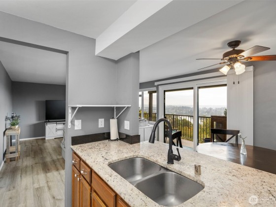 Enjoy breathtaking Water & Olympic Mountain views from this beautifully updated condo! Complete remodel finished in July 2025, featuring new interior paint, flooring, trim, doors, washer, dryer and a refreshed bathroom. The spacious main-level 2-bedroom, 1-bath layout includes cozy fireplace in family room, a mini-split for A/C in both primary bedroom & family room. Relax on your private deck with views of Port Washington Narrows and Bremerton Yacht Club or take advantage of community amenities including a clubhouse, outdoor pool, and sauna. Additional perks include a dedicated storage unit and covered parking space. Conveniently located near the Bremerton ferry, shipyard & shopping.