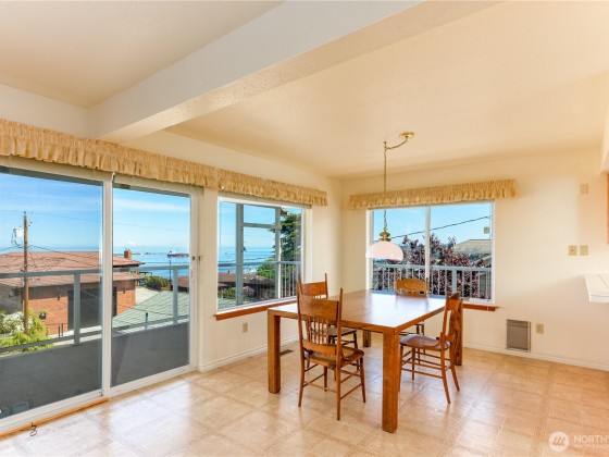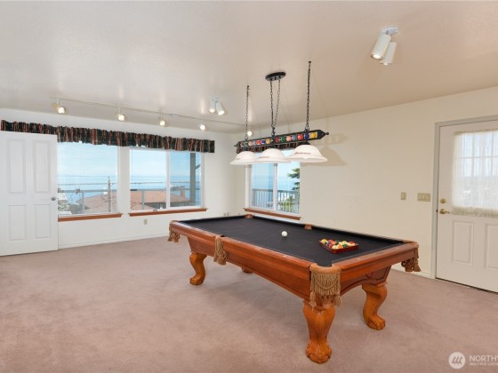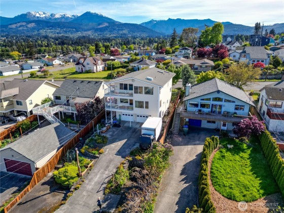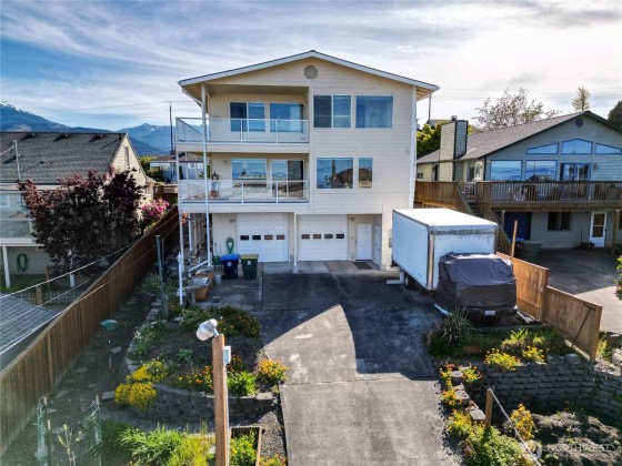 Take in the panoramic views of the Straits and the Olympics from the spacious decks on this custom home. Two primary bedrooms on the upper level with loft space and wet bar between. Primary one has mountain views, a soaking tub, and large walk-in closet. Primary two allows access to the upper level deck. Two bedrooms on main level, along with bathroom, and laundry room. Custom kitchen with pantry, views from kitchen window, breakfast bar, and dining area. Large living room with fireplace and access to the lower deck. In the basement find additional living quarters with outdoor access, a kitchen, bathroom, and washer and dryer. Large two car garage, RV parking & hookups, and plenty of storage. Landscaped lawn, fully fenced in front.