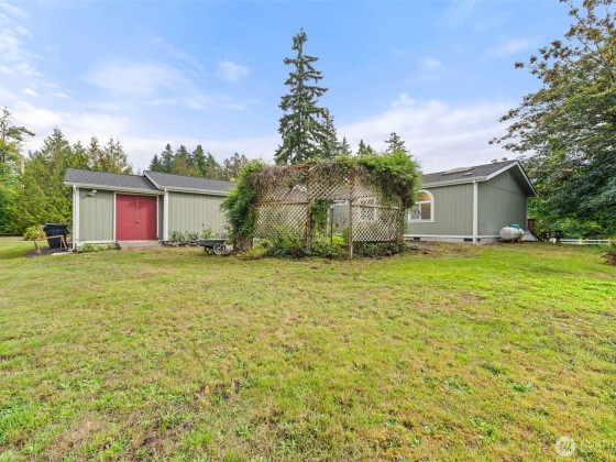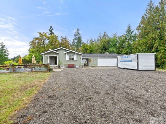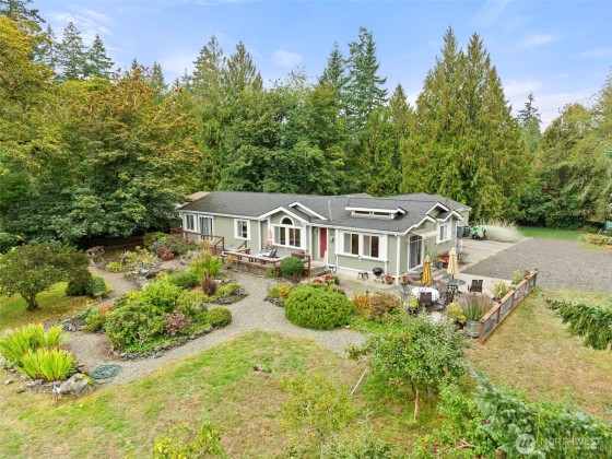 Located in Home on Key Peninsula, this 1.54-acre retreat offers space, comfort & flexibility. The 3-bed, 2-bath rambler features vaulted ceilings, open layout, 5-pc primary bath w/soaking tub, utility rm w/SS appliances & washer/dryer included. Enjoy an oasis-like garden w/mature landscaping, fruit trees & peaceful water feature. Entertain on the Trex-style deck w/built-in seating or expansive concrete patio. Oversized 860sqft detatched garage w/ 12×20 bonus rm with double french doors.—ideal for shop, studio or storage. Enjoy open, sun-filled spaces with fruit trees and peaceful surroundings—perfect for gardening, entertaining, or simply taking in the beauty of the property. Minutes from Key Peninsula parks, beaches, and shopping.