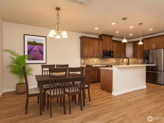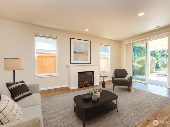 Easy Northwest living in desirable Jennie’s Meadow! This 2017 original-owner, Westerra-built 2-bed/2-bath townhome offers 1,350 SF of open-concept living with 9’ ceilings, faux hardwood floors, Quartz counters with island breakfast bar & stainless appliances. Enjoy the south-facing, private covered patio for sunny year-round indoor/outdoor living. Spacious primary suite with walk-in closet & dual-sink bath is separate from the guest room/bath. Interior laundry with utility sink, plus 2-car attached garage. "Lock & Leave" Lifestyle-Ready with many HOA-provided benefits for a low $439/Qtr (landscaping, common area/road maintenance, gutter cleaning...) Short walk to bus line, shops, dining, Olympic Discovery Trail & Railroad River Bridge Park.