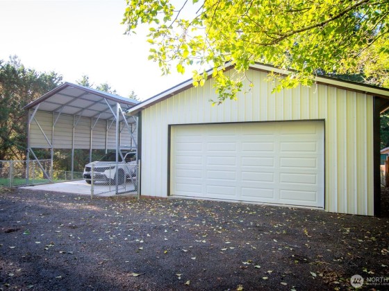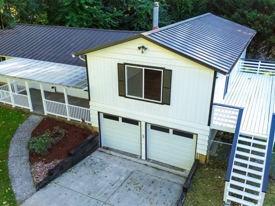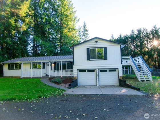 Enveloped within the trees where the roosters can crow, is this charming countryside home. Tastefully updated in 2018 to add some modern beauty to its traditional charm. This home offers split-level fun - main floor includes a full bath for guests, two bedrooms, and a Primary ensuite w/ 3/4 shower bathroom. As you wonder to the upper floor there is an expansive finished room w/ a wood-burning fireplace & personal deck access, w/ an flex spc / bedroom. Venture to the lower level for another open space to use for a large pantry, or as your choosing. A new metal roof installed in 2022! Place includes a 24x30' Shop & RV parking, too! It is fully fenced, other than a random roaming chicken, it offers great privacy and security.