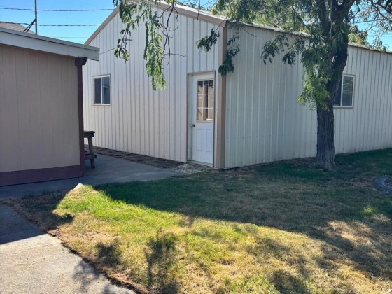 Charming, freshly painted home combining timeless character with modern comfort! Features refinished hardwood floors, a stylish kitchen with ceramic tile, quality cabinetry with pullouts, and plenty of storage. The spacious living room offers a cozy wood-burning fireplace and opens to the dining area. Versatile 3rd bedroom can serve as a primary suite or family room with French doors leading to a private fenced backyard and patio. Enjoy RV parking, a 738 sq. ft. detached garage (built in 2008), attached storage, and fiber internet. A truly inviting place to call home!