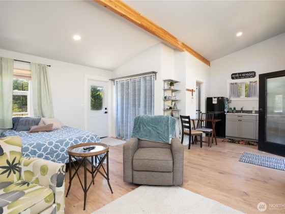 New Price! This immaculate, custom-built Johnson Point rambler sits on nearly 5 private acres and includes a newer DADU — ideal for guests, extra income, or multi-gen living! Built with energy-efficient Structurally Insulated Panels and radiant heat, this contemporary home is solid and updated with a new roof and gutters (2024), fresh exterior paint, and a newer hot water tank. Summer fun awaits with a sport court and outdoor propane grill, as well as your own tranquil walking trails. Inside, enjoy the updated kitchen and a refreshed primary bath. Just north of Lacey with easy access to Olympia, plus Tolmie State Park and Nisqually Wildlife Refuge nearby. Single-level living at its best.
