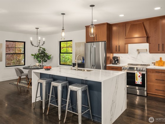 Style & substance shine in the heart of Laurelhurst. This 1941 4BD/3BA treasure w/ old-growth fir framing has been fully reimagined for today’s lifestyle. Open-concept living w/ wood-burning FP & refinished floors flows to a chef’s kitchen. Sip coffee on the sunny S-facing deck or entertain in the private backyard oasis. Luxe primary suite boasts vaulted ceilings, Euro-oak floors, walk-in closet & spa-like bath. LL offers rec room w/ bar, laundry/mud room, guest BD, storage & chic ¾ bath. All new windows, roof, plumbing, electrical & heat + designer finishes. Steps to Laurelhurst Park, top schools, shops & coveted Beach Club. Move-in ready—host Thanksgiving here!