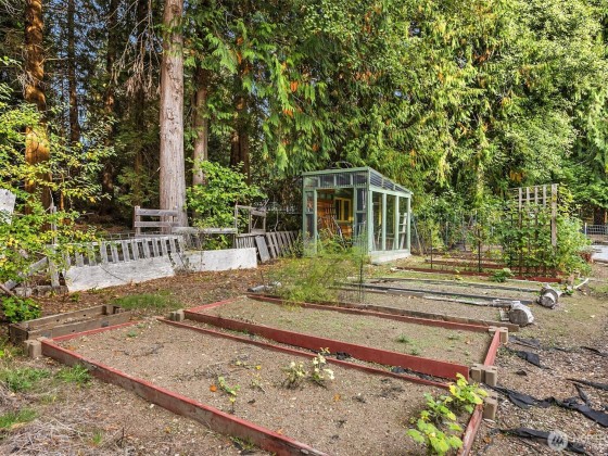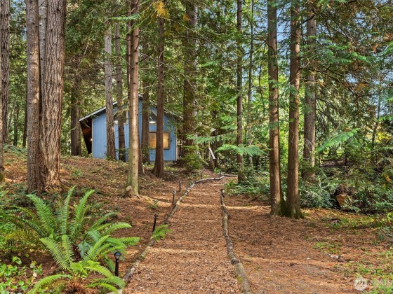 This 2-bed, 1.75-bath rambler radiates with warmth, style and smart updates — new kitchen, new baths, new flooring, new roof, new heat pump, and a cozy new wood fireplace for those misty island mornings. 1/3 acre lot with community use of 3+ acres of garden paths, P-Patch beds, and a greenhouse make this a gardner's paradise. Wander along the short wooded path to your detached studio with loft and half bath — perfect for guests or creating art, music, yoga flows, or your next big idea. Gather eggs from your chickens, sip coffee under the trees, and enjoy island life the way it’s meant to be - relaxed, inspired, & a little bit whimsical.