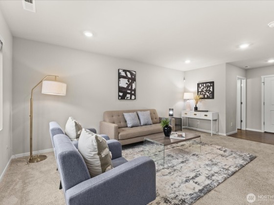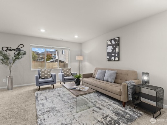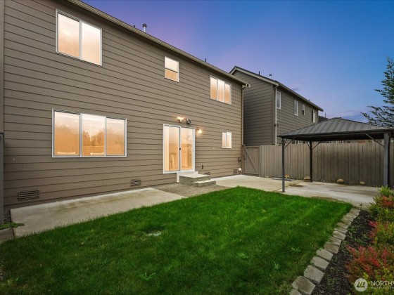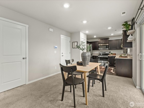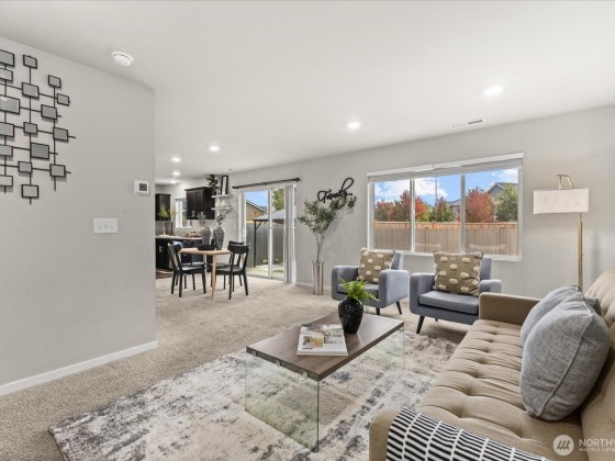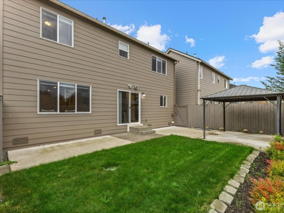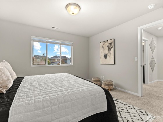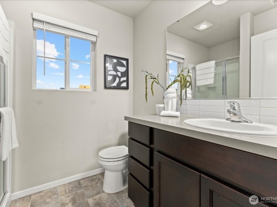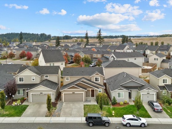 Welcome to Rainier Ridge where comfort meets modern living! This move-in ready 3-bedroom, 2.25-bath home offers a perfect blend of style and convenience. Step inside to a bright, open-concept layout that flows effortlessly from the kitchen to the living room ideal for gatherings and everyday living. The kitchen features a walk-in pantry and plenty of space for cooking and entertaining. Upstairs, all bedrooms are thoughtfully located on the same level as the laundry room, including a spacious primary suite with its own ensuite bath. Enjoy outdoor living with a fully fenced backyard, complete with pavers for relaxing or entertaining. The community offers sidewalks for evening strolls, a playground, and a clubhouse for fun. With a 2-