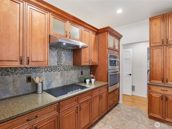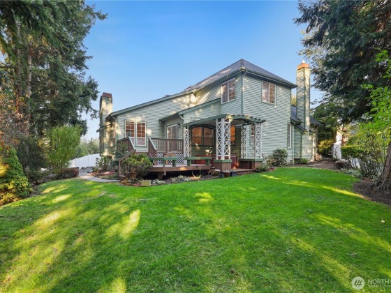 Quality-built 4BD/3BA home in desirable Honey Creek on a quiet cul-de-sac with a private, park-like setting. Features a welcoming entry, formal living/dining, spacious family room perfect for entertaining, and main-level den plus a bedroom with full bath—ideal for guests or extended living. Kitchen with quartz counters and newer appliances, including induction cooktop. The large fenced backyard backs up to green space to make for a private outdoor retreat. Recent updates: new roof, interior paint, furnace, AC, water heater, sealed ducting, and fully remodeled primary and guest baths. 3-car garage, extra parking. Great location near Coal Creek, trails, golf, shopping, dining, and easy access to I-405, I-90, Bellevue, and Seattle.