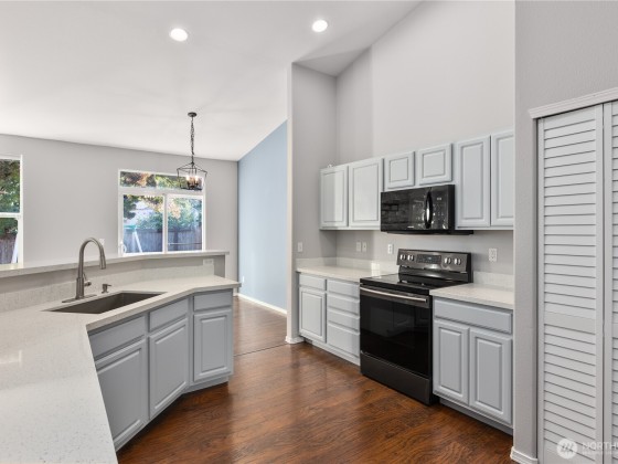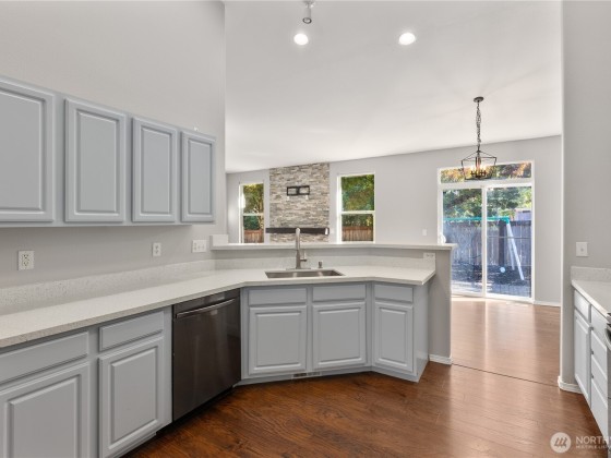 Experience the ease of turn-key living in this beautifully renovated, spacious home nestled on a peaceful loop in the Lacey community. This 2,079 sq ft residence features an extensive list of upgrades all new flooring, and fresh interior and exterior paint. The heart of the home shines with an all-new kitchen complete with modern appliances. Enjoy updated countertops on bath vanities, a cozy main floor fireplace, and a desirable walk-in closet. The property includes an attached garage and patio within a partially fenced yard. Strategically located with close proximity to the freeway, shopping, restaurants, and JBLM, this home perfectly blends convenience with quiet community living.