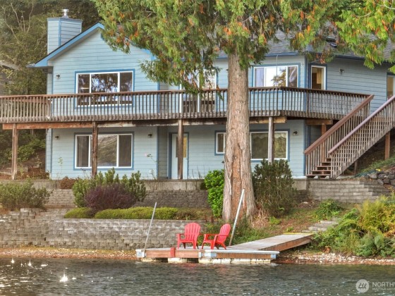 Benson Lake is one of Mason County’s hidden gems—and now it can be yours! This charming 2-bedroom, 2.5-bath home offers 120 feet of no-bank waterfront, a detached garage, a floating dock + lots of room to roam. Whether you’re seeking a full-time residence or a weekend retreat, this property delivers. Located just 40 minutes from Gig Harbor, it’s close enough for convenience, yet private enough to unwind. Enjoy the BIG lake views—you’ll love watching birds, sunsets, and July fireworks. Enjoy fishing, paddleboarding, swimming and more from your own beachfront. Plus, for a small yearly fee, you can join the local community club for pickleball + social events. Benson Lake is a non-gas powered water craft lake with no HOA. Welcome home.