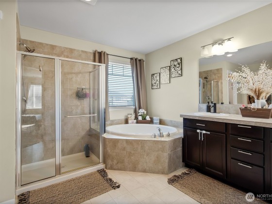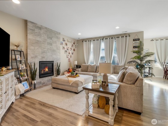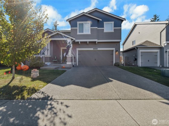 Stunning & Updated 5 Bed (Plus Huge Bonus Room) & 3 Bath home on Huge Fully Fenced .17 Acre Lot w/ Mt Rainier Views! Enjoy having a Primary Bed & Bath on Both the Main level & Upper Level & walking distance from brand new Liberty Elementary School. Possible VA Assumable Loan at historically low 3.125% Rate! Upgrades incl SS Appliances, 5 Burner Gas Stove Top, Granite Counters, Huge Center Island (Seating 6), Mosaic Tile Backsplash, Fully Tiled Gas Fireplace, LVP Flooring, Tiled Vanities, Tankless Hot Water Tank, & Much More! Other Features incl 5 piece Primary Bath w/Tiled Jetted Tub & Shower, Huge Walk In Closet, Covered Front Porch, Huge Extended Backyard, & More! Great Community surrounded by Schools, Parks, Food, Shopping, Trails,& More