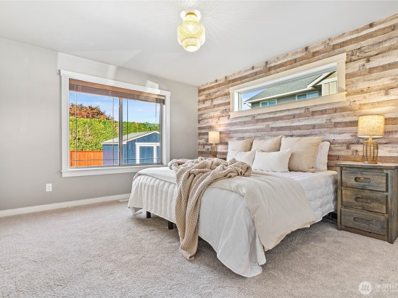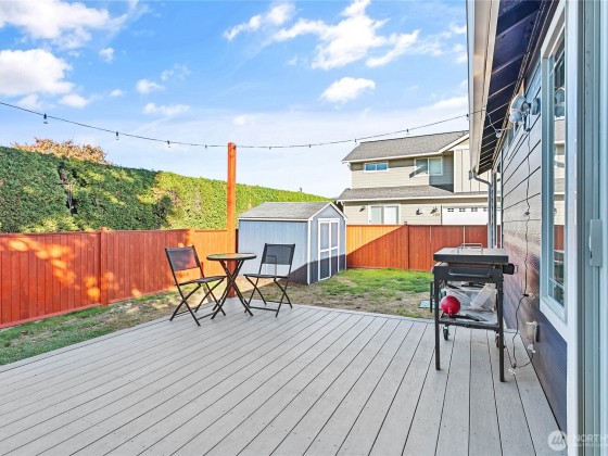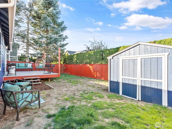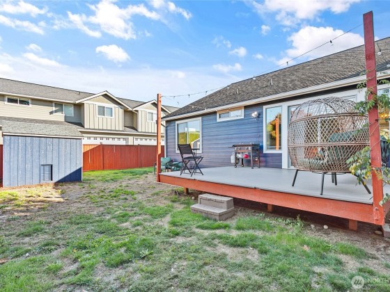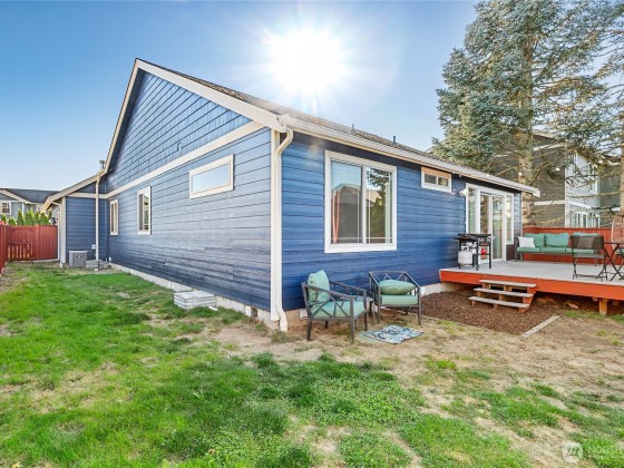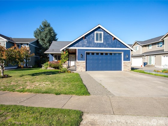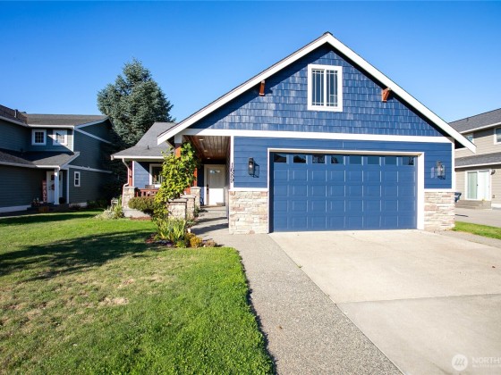 Newly sealed and painted Craftsman single level home. No HOA! Perfect entry level home, investment property or low maintenance living in desirable area. 1445 sf with spacious kitchen, granite countertops, stainless appliances, open concept space. Hardwood floors, new carpets & padding, 3 bedrooms, 2 full baths, lots of natural light, high ceilings and fully fenced yard with composite decking and outdoor shed. Natural gas forced air heating plus A/C! Large storage above garage w/ ladder access, storage shed out back. Sunny lot w/ garden beds, dwarf bing cherry and grapes. Close to city parks, trail systems, golf and local farms. Lynden's known for being the largest Dutch settlement in WA with a charming downtown, featuring a working windmill