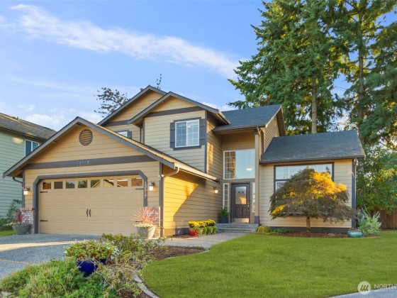 Nestled in the tranquil Rhody Lane loop of Silver Firs, this refreshed home blends comfort and convenience. Light bounces off vaulted ceilings over the formal living and dining areas. A granite kitchen with pristine stainless appliances and ample storage connects seamlessly to a family room centered on a gas fireplace. Through sliding glass doors, relax on your patio in a fully fenced backyard surrounded by greenery. The flexible main-floor room provides space for work, guests, or play, while upstairs, three bedrooms include a primary suite with walk-in closet and remodeled skylit bath highlighting a soaking tub, glass shower, and double vanity. Impeccably updated and perfectly turnkey, this inviting home is ready for your next chapter.