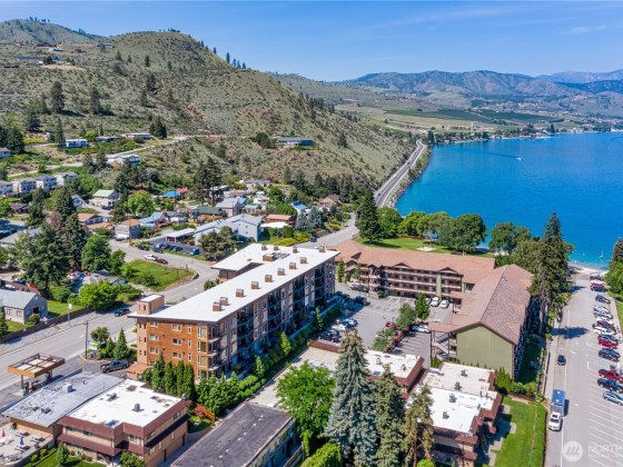 TURN KEY LAKE VIEW UNIT - Instant Income & Stunning Lake Views! This furnished 2-bedroom, 2-bath luxury unit at Chelan Resort Suites comes with an active STR permit - start earning right away. Enjoy the premier lake view, an open living/kitchen space, cozy fireplace, ensuite bath, in-unit laundry, and a private balcony. Resort amenities include a year-round indoor pool, spa, large BBQ area, elevator, and assigned covered parking with gated access and E-keys. HOA dues cover water, sewer, garbage, gas, WiFi, cable, and common area maintenance. Prime location near Lakeside Beach, parks, golf, restaurants, wineries, a surf park and downtown Chelan.