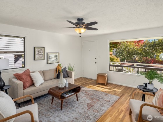 Welcome home to this lovable mid-century gem in the heart of the Admiral District. Offering both immediate comfort and future potential, this beautifully maintained and freshly updated home shines with new interior paint, refinished hardwood floors, and a truly flexible layout. Enjoy two living spaces, a dedicated home office, and a sunny and serene eat-in kitchen featuring a retro side door that leads conveniently to the detached garage — perfect for grocery hauls and all your outdoor gear. Relax with a beverage on the sweet front porch or entertain on the spacious back deck overlooking the fully fenced backyard. Ideally located near Alki Beach, the Admiral Junction, and the bridge to downtown. Enjoy the best of West Seattle living.