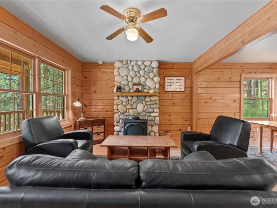 EDELWEISS: Charming and inviting 3BR/2BA southwest-facing log home in Edelweiss, Methow Valley. Nestled in aspen trees, on a peaceful 0.45-acre lot, this beautifully maintained cabin features an open great room with vaulted ceilings, abundant natural light, and warm wood finishes. Main floor primary bedroom and full bath; two cozy bedrooms and second full bath upstairs. Enjoy views including the green valley, Virginia Ridge & Lucky Jim, covered deck for relaxing or entertaining, and easy access to scenic trails, the national forest, and endless year-round recreation. Recent exterior stain, on-demand hot water, and most furnishings included. Edelweiss amenities include a seasonal pool, river access, National Forest. Move-in ready retreat!