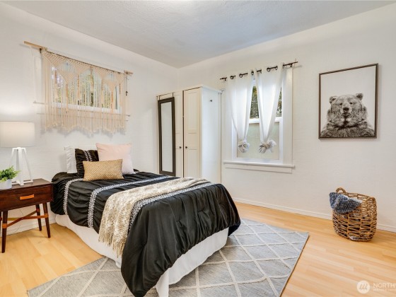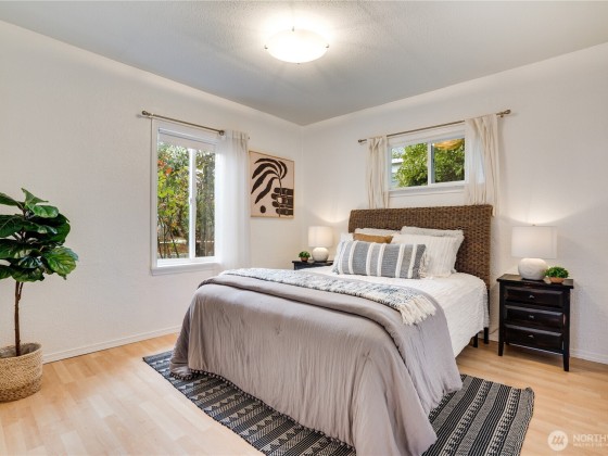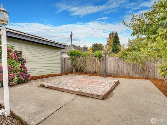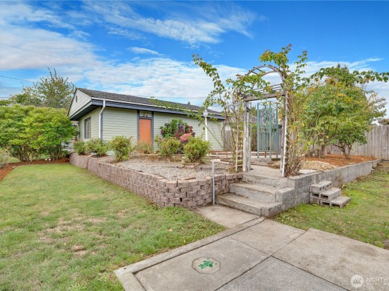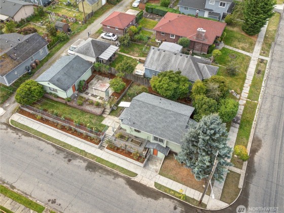 A home with a brand new roof surrounded by fragrant roses and blossoming trees stands on a corner lot in Tacoma’s South End. In the living room a bay window fills with light for plants and an electric fireplace gives a warm glow. Cook with gas in the eat-in kitchen with a box window for herbs and find ample storage in the basement. The fenced yard holds garden beds and lawn space. Lilacs, iris and hydrangea border the patio perfect for outdoor meals and a magnolia shades the side yard. A paved path leads to the detached, 2-car garage with an adjoining workshop. Updates include a new tub surround, fresh exterior paint in 2023 and the new roof. Enjoy this location close to parks, cafes and schools and just blocks from groceries and a library.