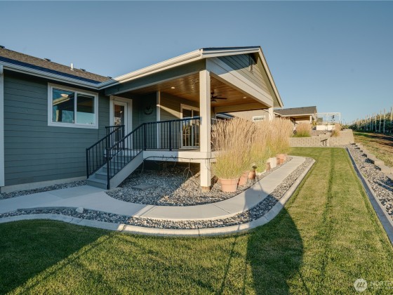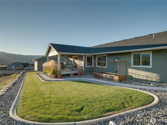 This upgraded rambler offers it all—Mtn views, custom finishes, open floor plan, RV parking & plenty of storage! 1,648 sq ft of total garage space (810 sq ft 3-car garage & an 838 sq ft detached shop w/a finished hobby room). Inside, you’ll find custom cabinetry, unique leather-finished granite countertops, & solid oak hardwood floors that flows throughout most of home, including the primary bedroom & dedicated office. The thoughtfully situated & private primary suite, features a walk-in shower w/glass enclosure, double sinks, & a walk-in closet. You'll love hosting on the spacious covered deck while soaking in the stunning mountain views! Low maintenance landscaping is connected to irrigation water w/auto sprinklers to keep life simple!