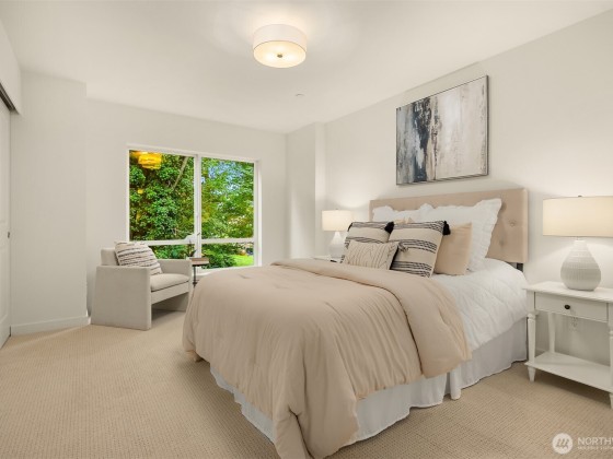 Rare 2-bedroom condo at Island Crossings! Northwest corner location brings afternoon light and peaceful views over 2+ acres of forest bordering 22-acre Sakai Park. Freshly painted with new carpet and lighting, it offers an open floor plan ideal for daily living and entertaining, plus a balcony to enjoy the tranquil outlook. The bedrooms feature double closets, and west-facing windows. Granite counters, stainless appliances, and proximity to shops, transit & island amenities complete the package.