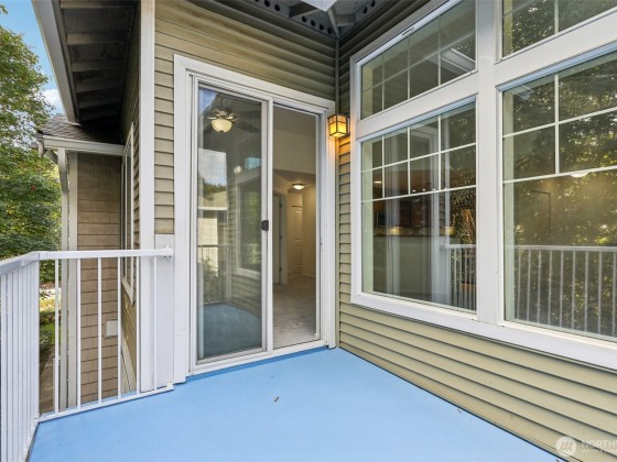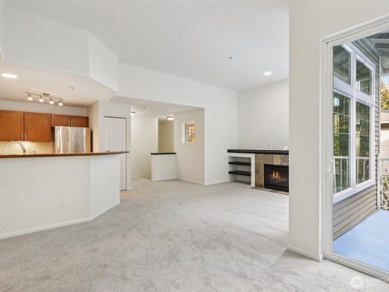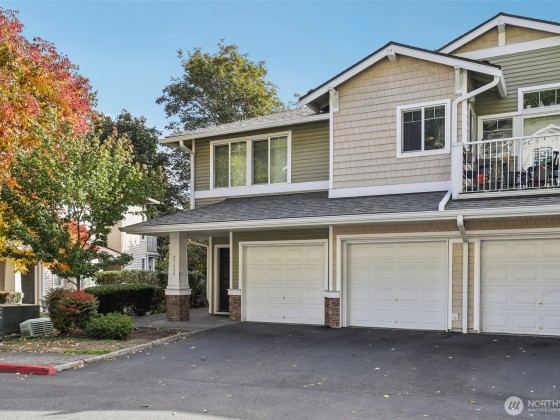 Welcome home to this light-filled 2 bed, 2 bath end-unit condo with soaring vaulted ceilings and a spacious, open layout. Enjoy the cozy wood-burning fireplace, dedicated dining area, and an inviting balcony overlooking lush greenspace—perfect for relaxing or entertaining. Perched on the top floor, this treehouse-like retreat offers beautiful sunrise and sunset views, with a glimpse of the mountains in fall and winter. Complete with an individual garage, new roof, and convenient HOA coverage for roof, exterior, water, sewer, and common area maintenance, this home blends comfort, style, and peace of mind in one inviting package.