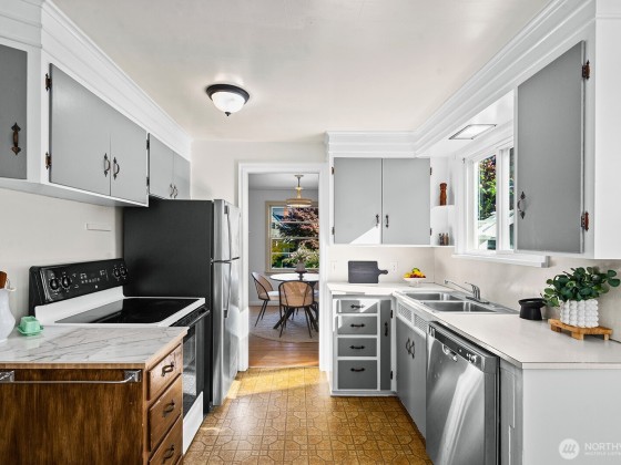 This timeless 1940s bungalow offers 4 bedrooms and 1.5 baths in one of West Seattle’s most sought-after neighborhoods. Warm hardwood floors, a classic fireplace, and a partially finished basement highlight the home’s vintage charm and solid bones. The upstairs dormer windows provide cozy nooks and partial views, while the private backyard creates a peaceful retreat. Freshly painted and full of potential, this is a rare opportunity to make a classic home your own. Ideally located near vibrant shops, dining, parks, and all the best of West Seattle.