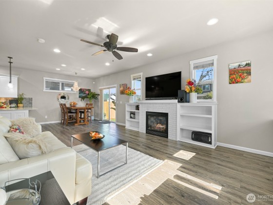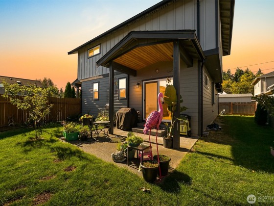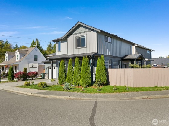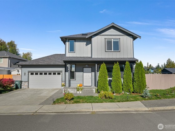 Immaculate craftsman home with luxury finishes and timeless design, positioned on a corner lot in a quiet neighborhood with sidewalks, a park, and convenient overflow parking. Step inside to an inviting open floor plan filled with natural light and enhanced by custom trim work, built-ins, and a cozy gas fireplace. The kitchen features stainless steel appliances, quartz countertops, dovetail shaker cabinets, and a stunning backsplash that ties it all together. The spacious primary suite offers a vaulted ceiling, walk-in closet, and spa-like bathtub. Enjoy a fully fenced yard with a covered patio—ideal for year-round outdoor living. A large mudroom with half bath and an attached two-car garage add everyday convenience.