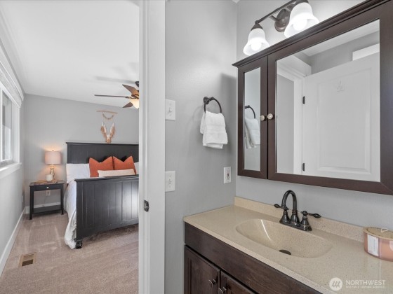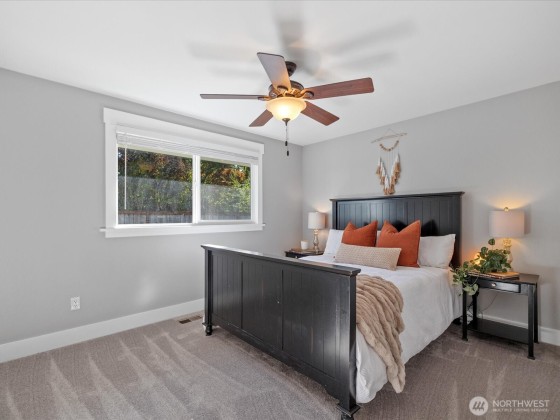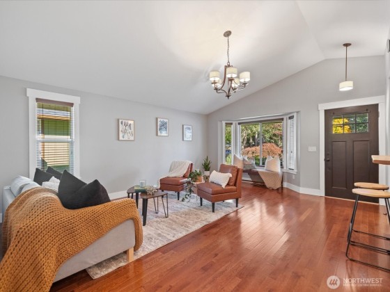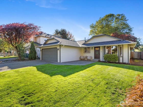 Beautiful 3 bed, 2 bath RAMBLER in the Fryelands! Your new home has been updated & wonderfully maintained. From the expansive walnut hardwood floors & brand new carpet in all bedrooms, to the Quartz countertops, custom backsplash, raised island & matching SS appliances. The primary bedroom is complete w/ attached bathroom & walk-in closet! Efficient heating & cooling w/ new heat pump! Recent 50 yr. roof & new water heater. You'll have a 2 car attached garage & electric vehicle charging station. The fully fenced yard with firepit is a wonderful spot to relax & enjoy the evening! Home backs up to Currie View Park w/brand new play equipment. Super close to Lake Tye (and TONS of parks and trails!) Easy access to 522 & HWY 2 & shopping!