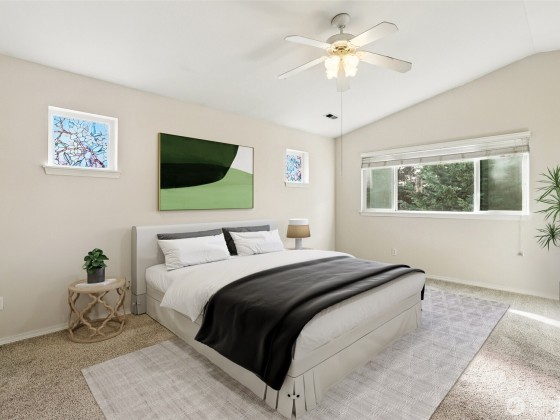 Refreshing, open, and filled with natural light—this 3-bedroom, 2.5-bath home in a gated community is truly better than new. Fresh interior paint, new carpet, and new appliances make it move-in ready. The inviting layout features soaring ceilings, a see-through gas fireplace, spacious bedrooms, and a generous primary suite. The kitchen shines with an island bar and brand-new appliances, perfect for entertaining. Step outside to a private, fully fenced yard with a cedar shed, patio, and plenty of space to relax, garden, or play. Enjoy the charming front porch and a convenient location near Costco, South Hill Mall, restaurants, schools, and parks. A turnkey home ready for you to enjoy!