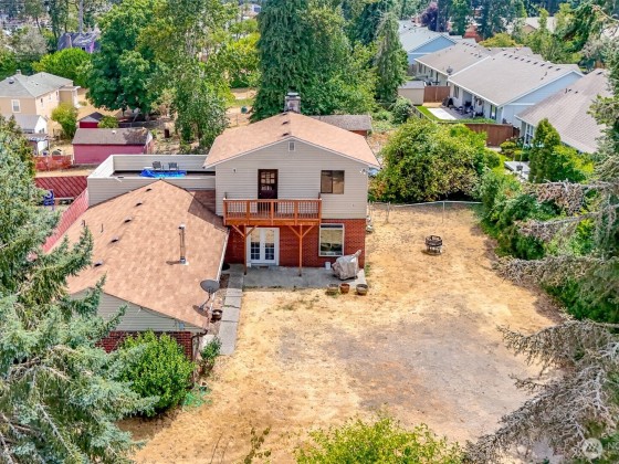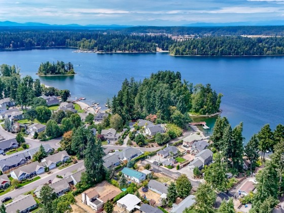 Fixer alert! Walk to American Lake from this home. Years ago was a duplex. 3 bedrooms, 1.75 bath. Partially fenced w/dog run. View of Lake from upper balcony. Home surrounded by beautiful homes. Needs some TLC but make an offer. Do not walk on upper large deck. Family room has ceiling damage from the deck leak. On septic, but sewer close now. Sold as-is.