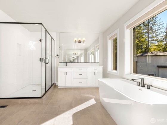 Welcome to this 2023 custom home on 1.35 acres across from Lake Bosworth. With 3 bedrooms, 3 baths, and over 3,200 sq ft, it offers space to gather and grow. The open kitchen with quartz island and stainless appliances flows into light-filled living and dining areas, complete with soaring ceilings and two fireplaces. Upstairs, the primary suite is a private retreat with a spa-inspired bath and walk-in closet. Outside, enjoy a 3-car garage, RV parking, and your own wooded backyard with trails to explore — perfect for walks or adventures. Modern comfort meets natural beauty in this peaceful Snohomish retreat.