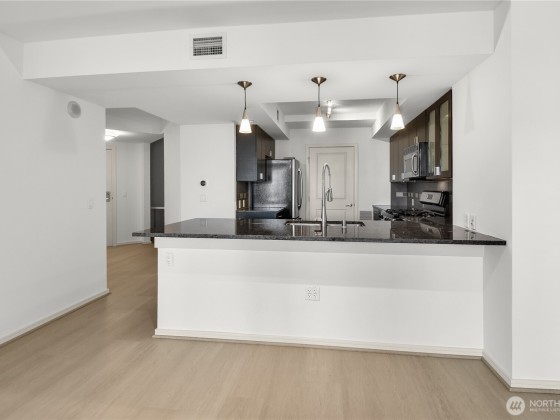 Welcome to the Cosmopolitan in the heart of Seattle’s Denny Triangle. This spacious 1-bedroom, 1-bath condo offers 954 sq ft of open living with floor-to-ceiling windows, hardwood floors, and a private balcony with sweeping city views. The modern kitchen features granite counters and stainless-steel appliances, while the bedroom includes a large walk-in closet, full bathroom. Building amenities include 24-hour concierge, fitness center, spa, business lounge, and rooftop terrace with breathtaking views of Lake Union and the city skyline. HOA covers water, sewer, garbage, cable, internet. One secure garage parking space included. Walk Score 100 - steps to Amazon, Whole Foods, restaurants, light rail, and all Downtown Seattle Fun.