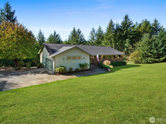 Don't miss out on this beautiful custom-built 3-bedroom, 2-bath home offering comfort, space, & thoughtful design. The spacious open concept kitchen with bar, walk-in pantry, and seamless flow into the dining and family room with a cozy gas fireplace is perfect for gatherings and everyday living. All bedrooms are generously sized with large closets, & built-in office adds convenience for remote work or study. Enjoy single level living with a large covered front porch featuring, low-maintenance decking, plus a back deck ideal for relaxing. A large two car garage, nestled among mature trees this property is both private and minutes to shopping and services, this home delivers country living with easy access to town conveniences.