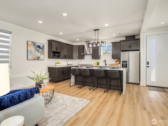 Discover contemporary living in the vibrant neighborhood of Othello Station! LVP floors thru-out, smartlock entry & 5 mini-split AC units. Open-concept Living Rm is perfect for entertaining w/ custom shade blinds. Main Lvl offers a Bed & full Bath, ideal for guests/den. Chef’s kitchen w/ full tile backsplash, abundant cabinets & spacious island w/ elegant waterfall counters. Upstairs, each Bed includes private ensuite Bath w/ custom tiles. Primary Suites boast WICs, dual sinks, rainfall shower wands & covered balconies + soaring vaulted ceilings on the top floor. Short walk to Othello Park, restaurants & the Light Rail station. Quick Drive to Seward Park, DT Seattle, SeaTac Airport & I-5. Experience modern comfort & unbeatable convenience.