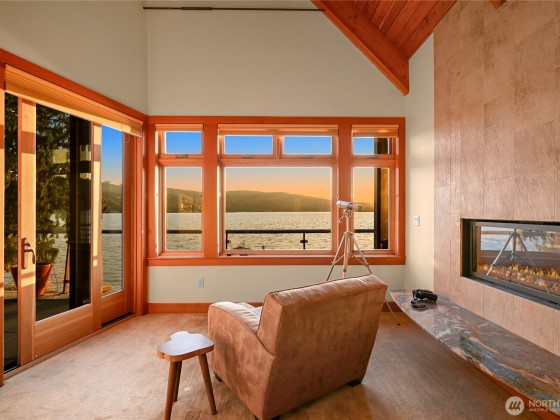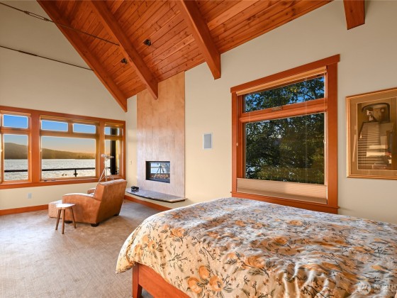 One of Lake Whatcom's most unique properties with epic views and sunsets offering unparalleled privacy with 120 feet of no bank waterfront and a picturesque creek. From the show stopping entry gate to the rusted steel garage doors, this property is the thoughtful and artistic result of a collaboration of Northwest architects, metalsmiths, artists, and constructed without a budget in mind. With over 4,000 sqft, features include a stunning steel and concrete staircase, exposed steel beams, sumptuous primary suite with fireplace and hot tub, heated concrete floors, soaring wood ceilings, boat and jet ski lifts, additional fenced parking area, and so much more. Enjoy THE ultimate lake house with a rare drive-thru boat house and boat launch!