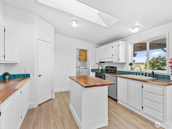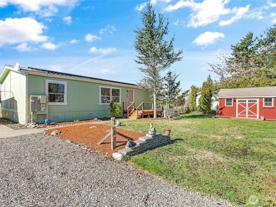 Spectacular sunsets & peaceful country views from this bird watcher’s paradise! Relax on your private deck overlooking expansive fields, set on a very spacious lot. Ideal floor plan w/primary suite on one end & secondary beds/bath on the other. Open kitchen features, custom Acacia hardwood counters, skylight, & vaulted ceilings for a bright, airy feel. Upgrades include a Kohler walk-in tub/shower, new waterproof flooring, dishwasher, washer, newer metal roof, & Level 2 EV charger. Outside, 2-car carport, attached shop plus two versatile outbuildings w/power & insulation. Additionally, new $25K well head/filtration system, fresh int/ext paint, front deck, raised garden beds, & cherry/plum trees. Solar panels bring your power bills near zero.