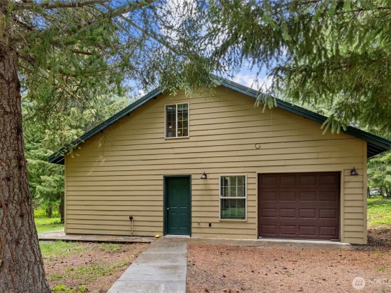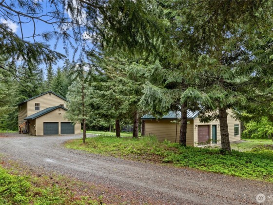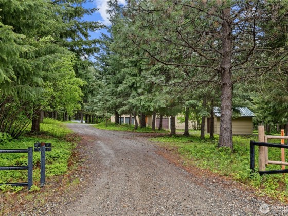 Escape to tranquility on this breathtaking 5-acre retreat, tucked away in the trees along the serene shores of Lake Cle Elum. This secluded retreat offers beauty, privacy, and four seasons of recreational fun! The main house features 3 beds, 3 baths, and a cozy living room with a wood-burning fireplace. The kitchen opens onto a spacious dining area, perfect for entertaining. Enjoy outdoor living on the wrap-around covered deck with a fireplace. Property offers a separate guest house (638 sq ft) with sleeping loft, kitchenette, and garage. Trail access to the beach for a day of relaxation. Whether it's a vacation getaway or your primary residence, this property offers the ultimate in serenity and enjoyment. No HOA, no CC&Rs.