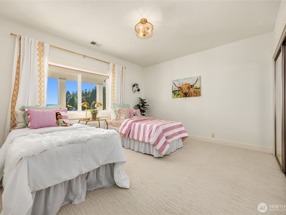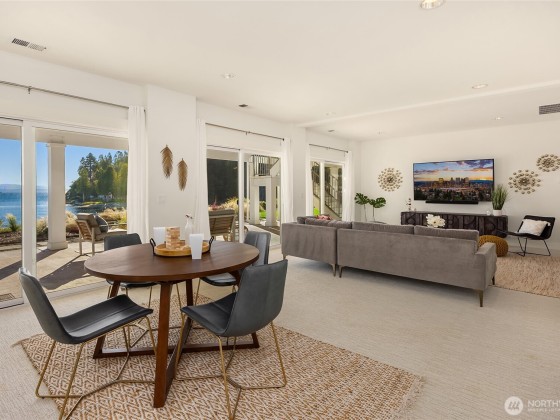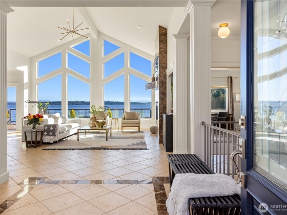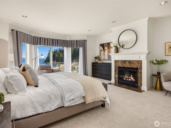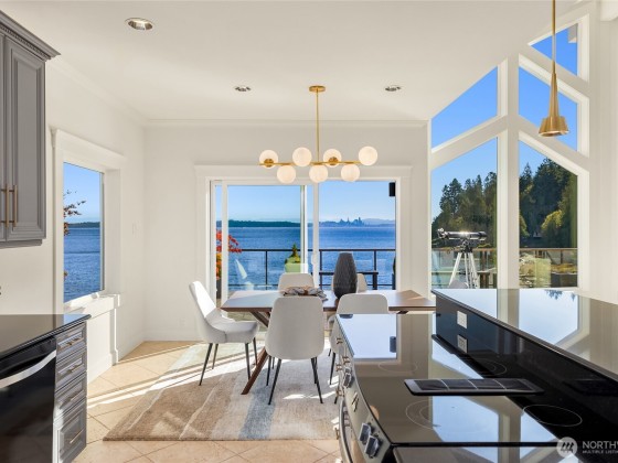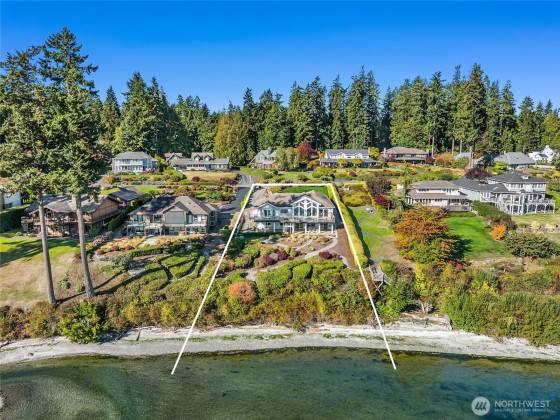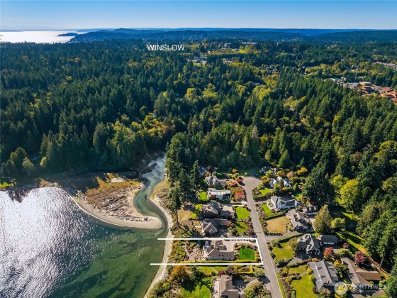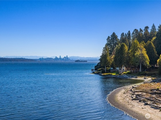 Offered for the first time, this custom-built waterfront masterpiece occupies the premier lot at the center of a quiet cul-de-sac—chosen by the original owner for its commanding, straight-on views of the Seattle skyline. Designed with longevity and timeless elegance in mind, this home showcases quality craftsmanship throughout and a coveted main-floor primary suite. With easy access to the water for kayaking and a setting that captures Bainbridge Island’s finest vistas, this is a rare opportunity to own a truly exceptional retreat. Automatic generator.