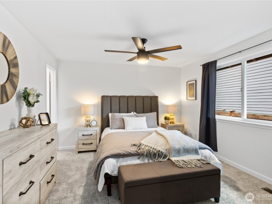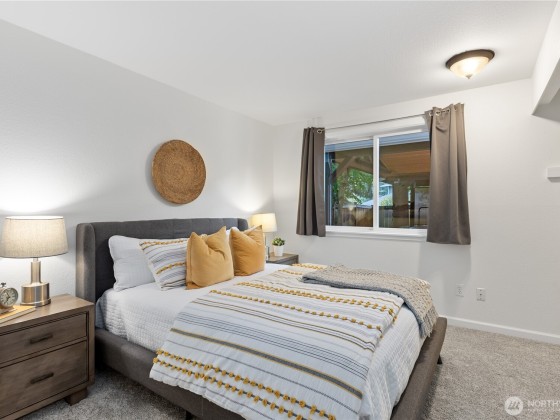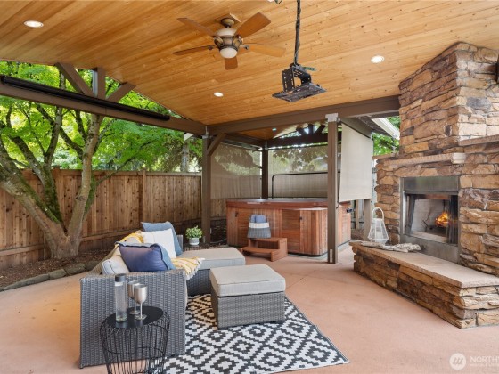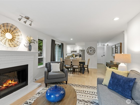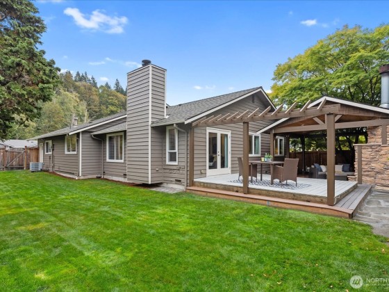 Welcome home to this beautifully refreshed rambler in the coveted Meadow Creek Park neighborhood. New carpet and fresh paint create a bright, modern aesthetic. The spacious living area centers around a stunning brick gas fireplace. Stay cool in our warmer months with air conditioning.Kitchen with newer appliances & ample pantry. Entertain in style in the outdoor room featuring a private hot tub, projection screen and wood burning fireplace. Backyard garden shed and covered firewood storage, as well as lawn for yard games and fun for all ages! The exterior is freshly painted and the roof was replaced five years ago.Northshore School District. Conveniently located to I-5 and I-405, shopping, parks.