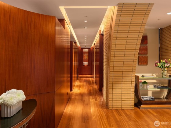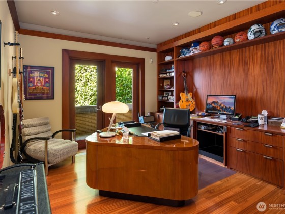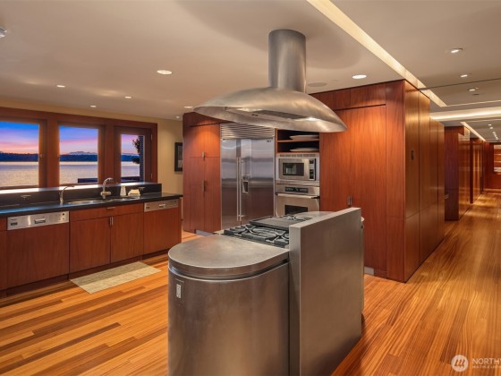 Discover unparalleled luxury in this Tom Kundig designed masterpiece. Echoing Frank Lloyd Wright's spirit, its exterior melds brick, mahogany, limestone, and copper. Inside, find Art Deco elegance with book-matched Honduran mahogany walls and elegant African mahogany floors throughout. This unique marriage of materials radiates warmth, sophistication, and timeless appeal throughout the residence. Set on nearly 2 acres, enjoy 135ft of prime waterfront, with due west - facing, breathtaking views. The unique intersection of traditional and modern design encapsulates the essence of true architectural innovation, reflecting a profound respect for natural materials and their inherent beauty. It's more than a home, it's a timeless legacy.