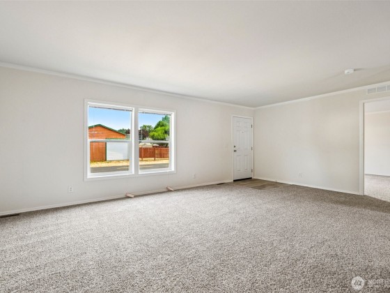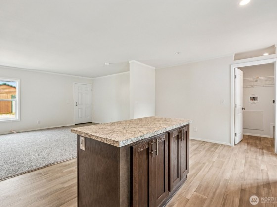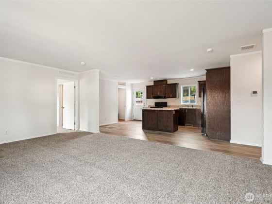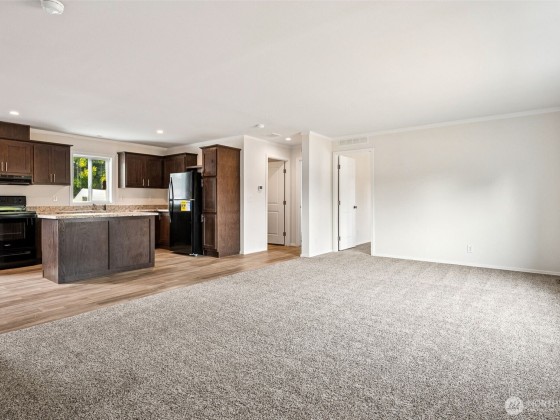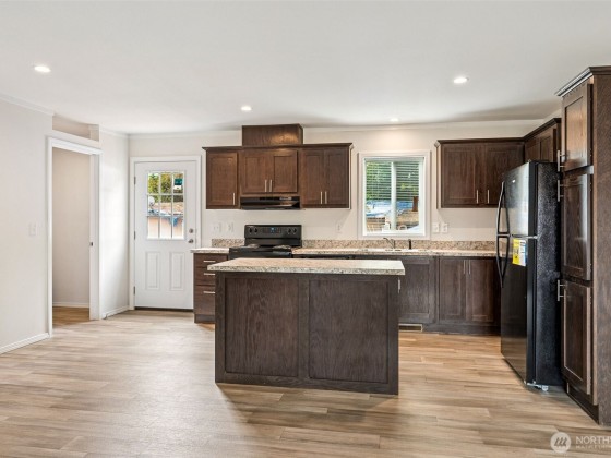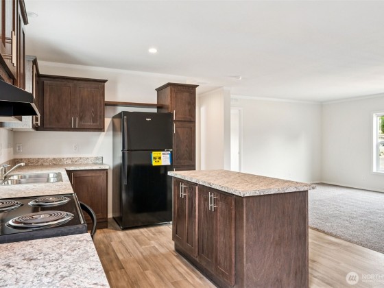 Discover comfort and style in this brand new 2025 double-wide manufactured home! With 1,296 sqft, this 3-bedroom, 2-bath beauty features vaulted ceilings, a desirable split-bedroom layout, and a spacious island kitchen with dark cabinets, black appliances, and durable formica counters. Enjoy easy-care laminate flooring in main areas, plush wall-to-wall carpet in bedrooms, and a full primary suite with a walk-in closet and private bath. The separate utility room adds convenience, while the back door opens to your private yard—perfect for relaxing or entertaining. Bright vinyl windows fill the space with natural light. Modern, move-in ready, and designed with everyday living in mind—your new home awaits!