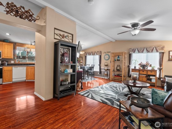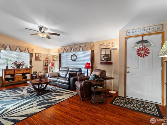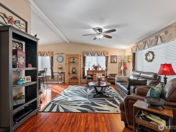Walk in to this peaceful home off the beaten path in a 55 + community and you will not want to leave. A 2002 3 bed 2 Bath home in Canyon Terrace. This home has an enspiring kitchen with lots of cabinets, gorgeous counter tops and easy to manage flooring. Amazing wood laminate flooring in living and dining room. Vaulted ceiling and ceiling fan, white vinyl windows and blinds, and the comfort and energy effiency of a heat pump all make this home feel like it is a stick built cozy rambler. A wonderful modern abode with easy to maintain yard. Then enjoy your with private covered patio area with a hottub. Located near freeways, shopping and hospitals, entertainment. Small pets ok with approval. Park preapproval required.. Side/Side carport.