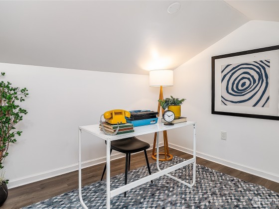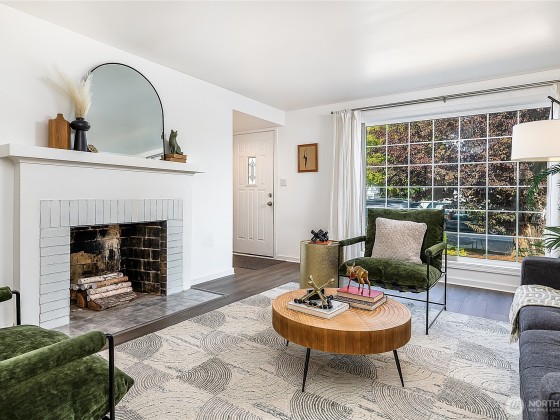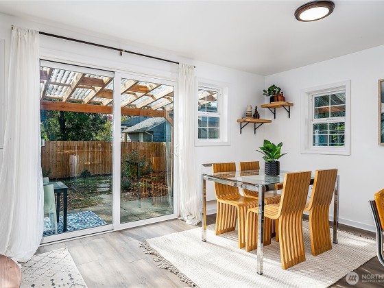 This 40's rambler has great flow with a handful of distinct hangouts. Livingroom with fireplace, dining, and there's an upstairs bonus room which could become a future 3rd bedroom. The bright dining room opens onto a covered patio. Sitting there you look out on a deep and sunny back yard. And yes, there's an alley! Fabulous walkable neighborhood right by light rail. Please see the Narrated Video Walkthrough.
